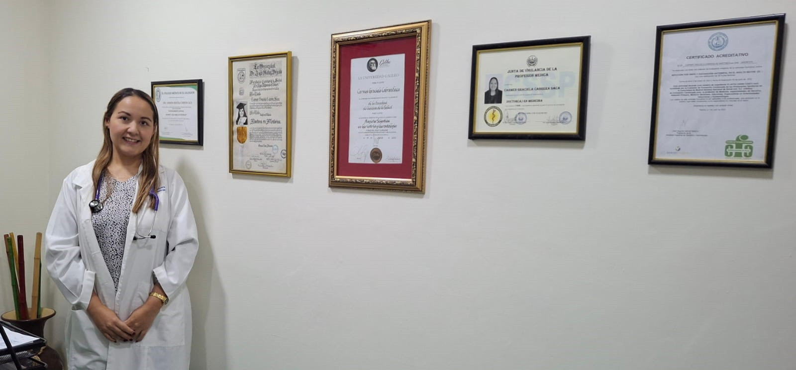 - Doctorado en Medicina por la Universidad Dr. José Matías Delgado.