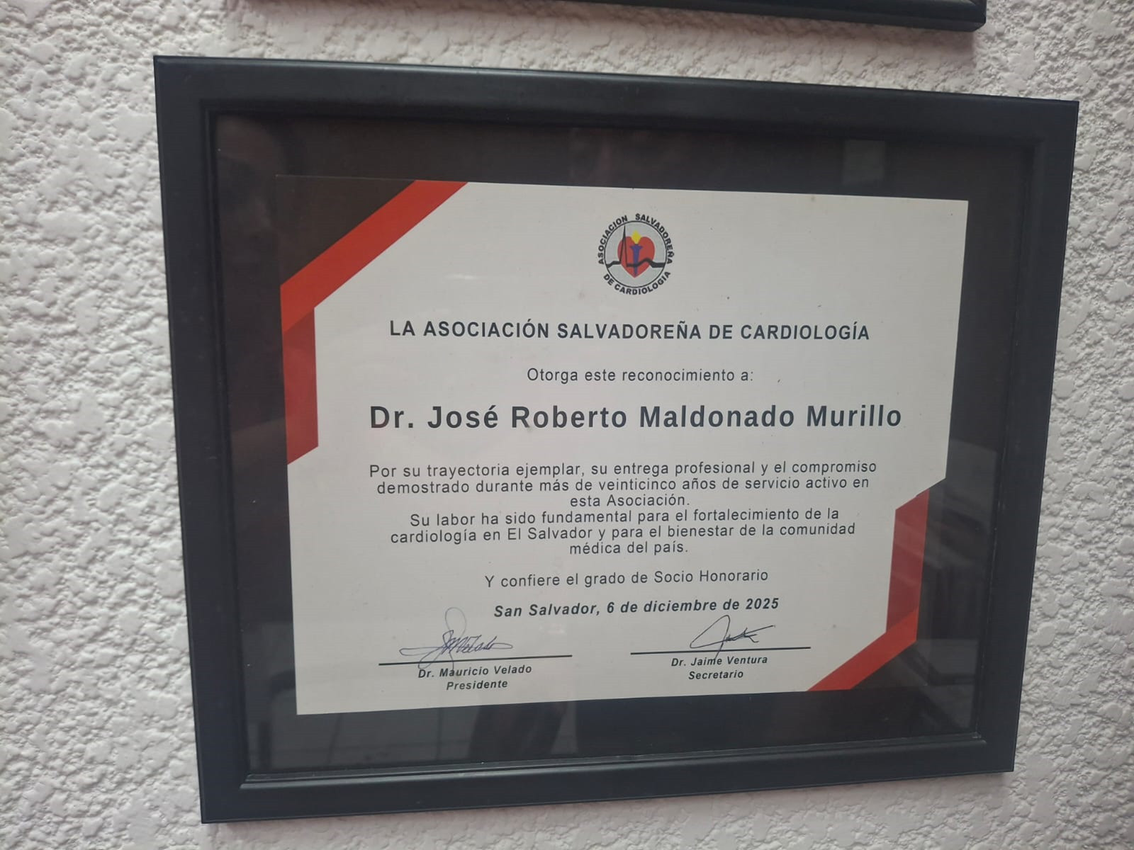 - Socio Honorario de la Asociación Salvadoreña de Cardiología.